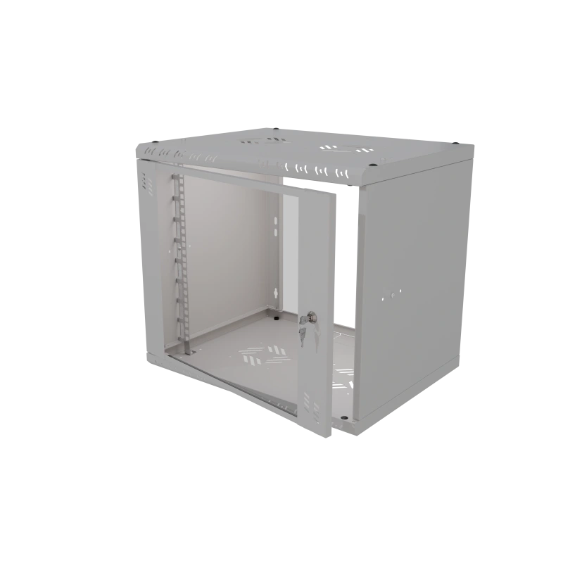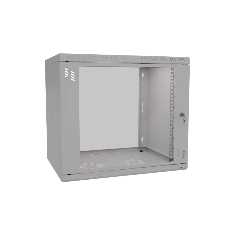 19Rack9U400 nástenný rack 19" 9U 520x400, sklo, demont, šedý