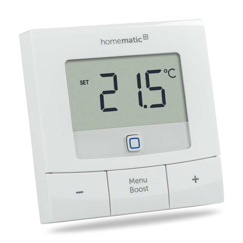Nástenné termostaty Homematic IP nahrádzajú bežné nástenné termostaty, riadia priestorovú teplotu v miestnosti a proces vykurovania podľa individuálnych potrieb, čo vedie k okamžitej úspore a zníženiu výdavkov na energie až o 30 %.