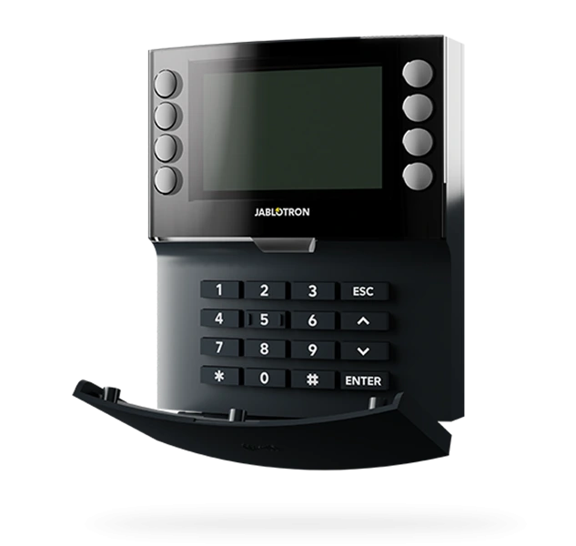 Klávesnica je súčasťou systému JABLOTRON, ktorá slúži na ovládanie a signalizáciu aktuálneho stavu systému. Je vybavená štyrmi segmentmi. Ich popis sa zobrazuje na LCD displeji. Produkt je určený na inštaláciu vyškoleným technikom s platným certifikátom Jablotron. Tento produkt je kompatibilný s ovládacími panelmi JA-102K, JA-103K a JA-107K.