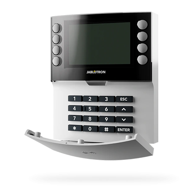 Klávesnica je súčasťou systému JABLOTRON, ktorá slúži na ovládanie a signalizáciu aktuálneho stavu systému. Je vybavená štyrmi segmentmi. Ich popis sa zobrazuje na LCD displeji. Produkt je určený na inštaláciu vyškoleným technikom s platným certifikátom Jablotron. Tento produkt je kompatibilný s ovládacími panelmi JA-102K, JA-103K a JA-107K.