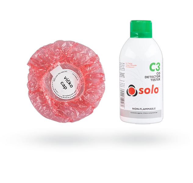 Používa sa na testovanie funkčnosti detektorov CO EI208W a EI208DW. Dodáva sa v sade s nasadzovacími manžetami, ktoré zabraňujú nežiaducemu rozptýleniu testovacieho aerosólu mimo oblasti detektora. Obsah spreja vystačí na približne 50 testovacích dávok.